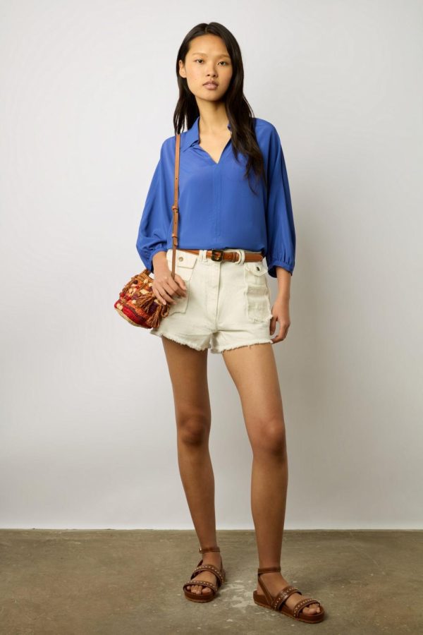 Blouse ample à col chemise dans un mélange contenant de la soie.