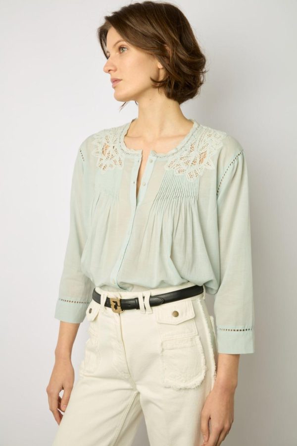 Chemise dans une matière fine et légère à l’encolure brodée.
