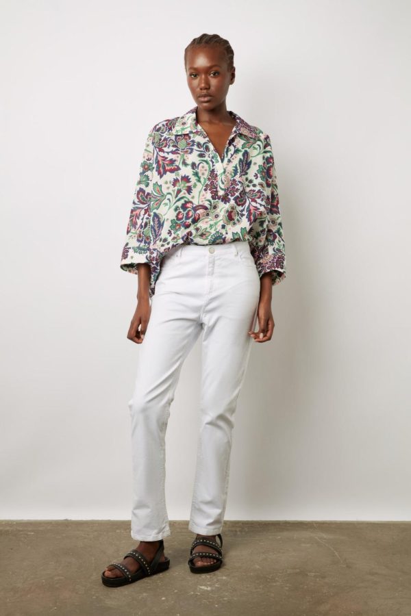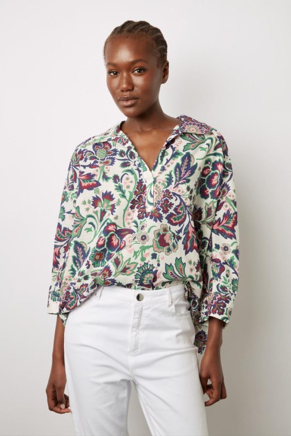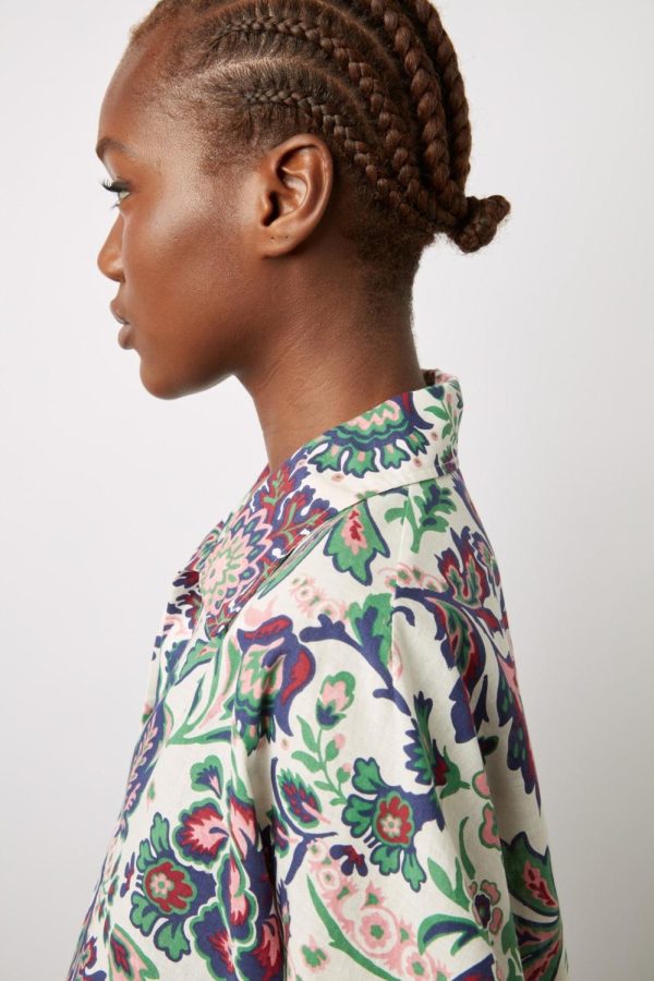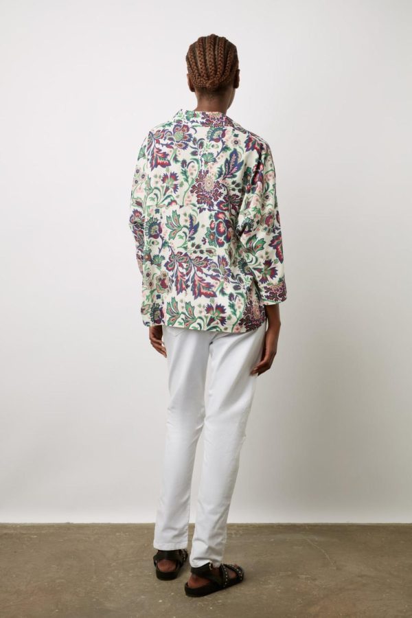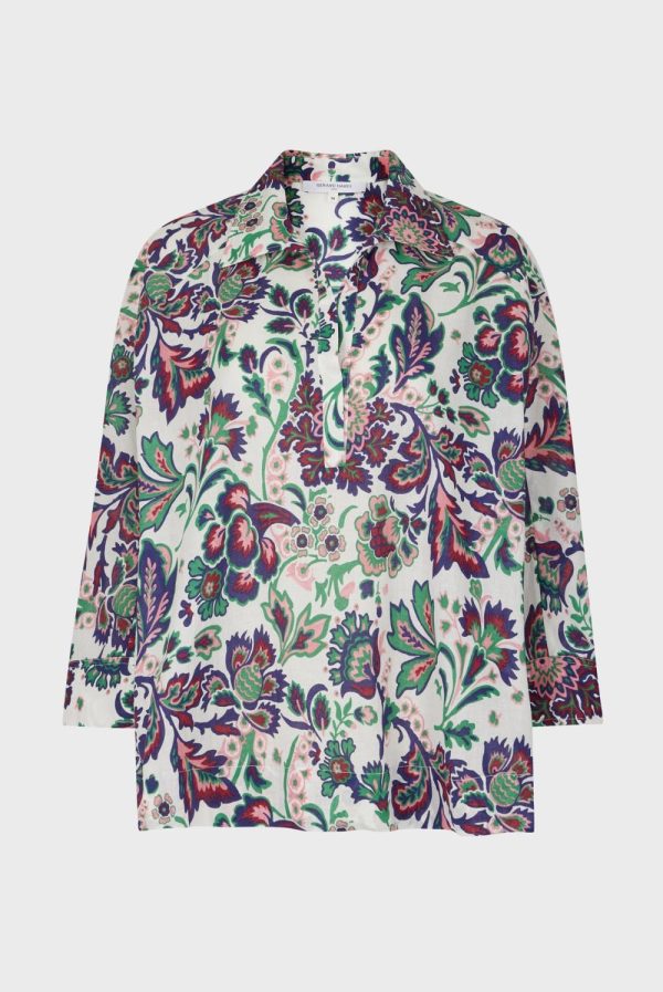 Blouse en voile de coton avec un imprimé de grandes fleurs. 100% coton.
