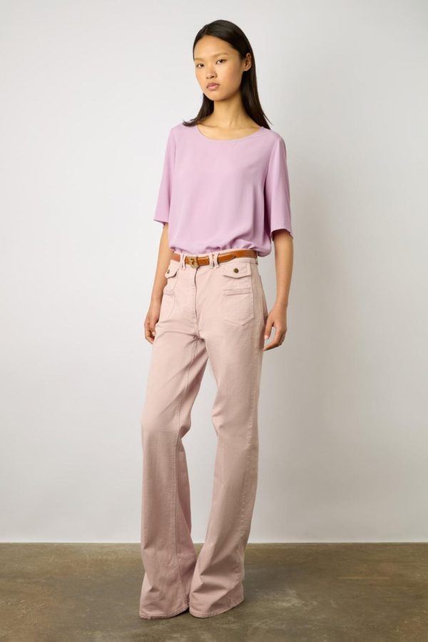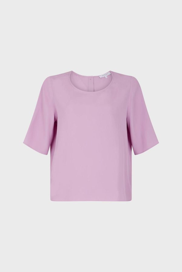 Blouse unie dans un mélange contenant de la soie. Dos boutonné.