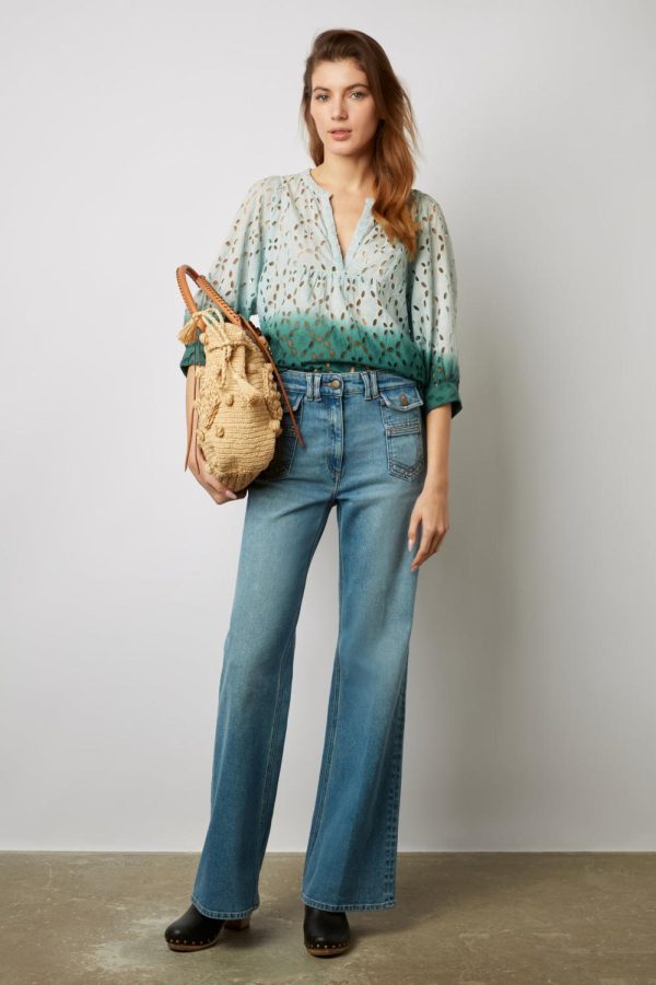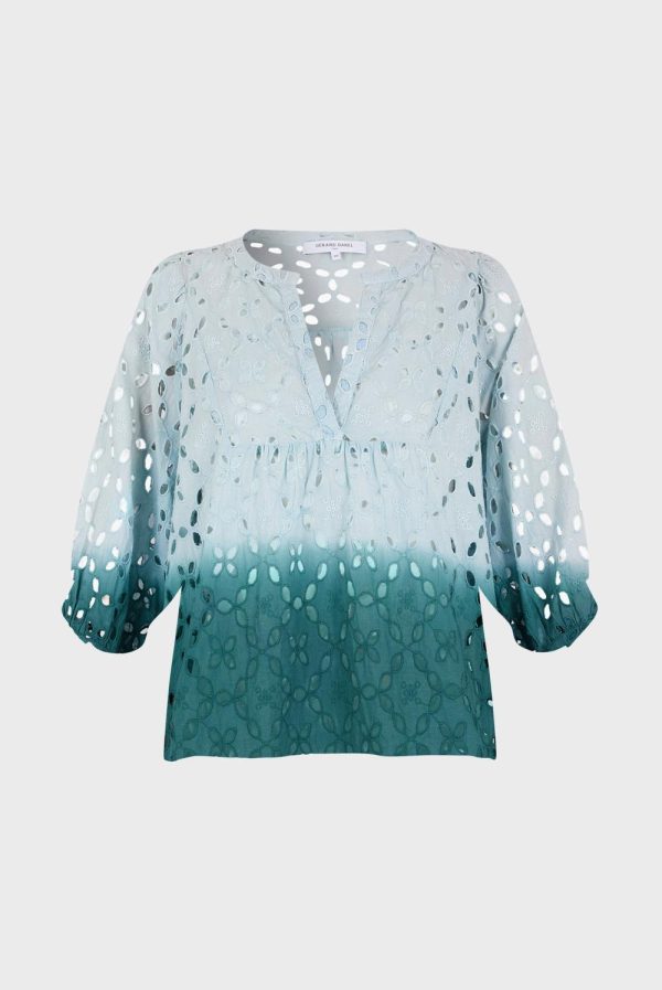 Blouse Tie And Dye Brodée Vert D’eau ALYFF | Femme Gerard Darel Chemises & Blouses