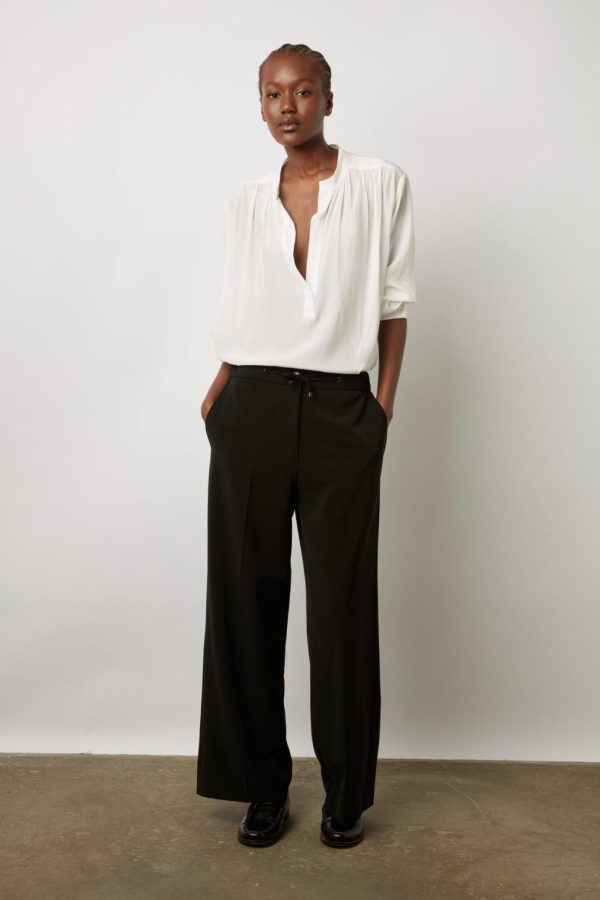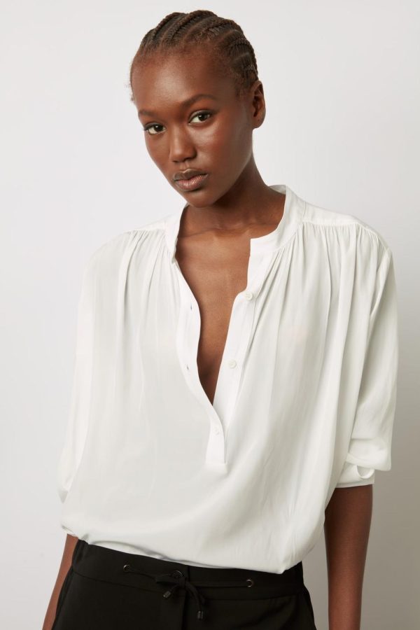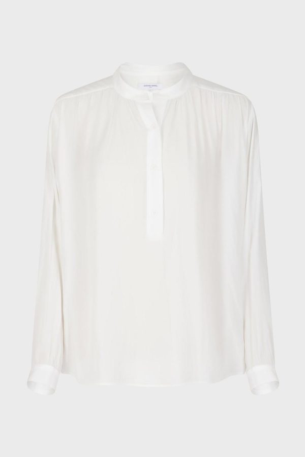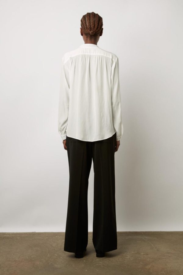 Blouse unie dans une matière douce et légèrement plissée. Elégance classique.