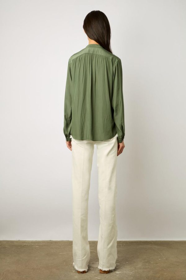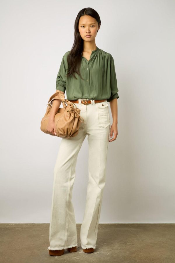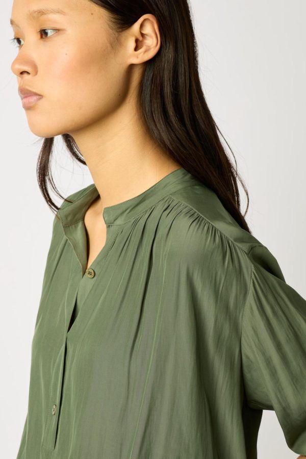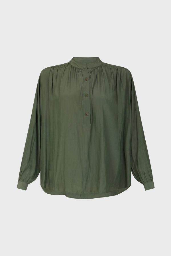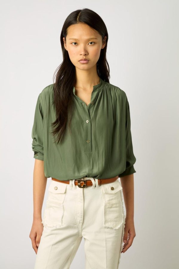 Blouse unie dans une matière satinée et légèrement plissée. Elégance classique.