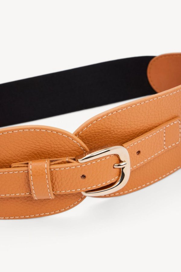 La OLYMPE est une ceinture corset large en cuir de veau grainé.