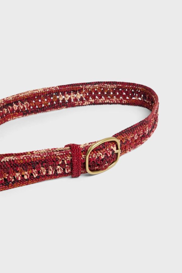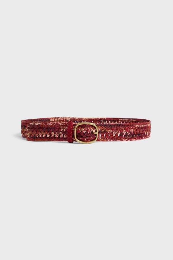 La PALOMA est notre ceinture en raphia naturel chiné dans les tons de bordeaux.