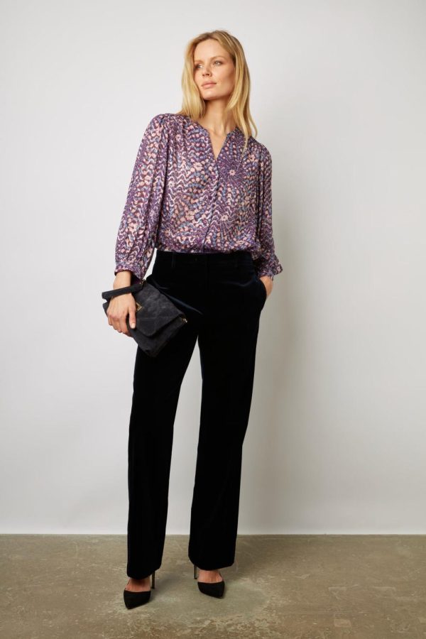 Chemise en mousseline avec un imprimé floral et du lurex.