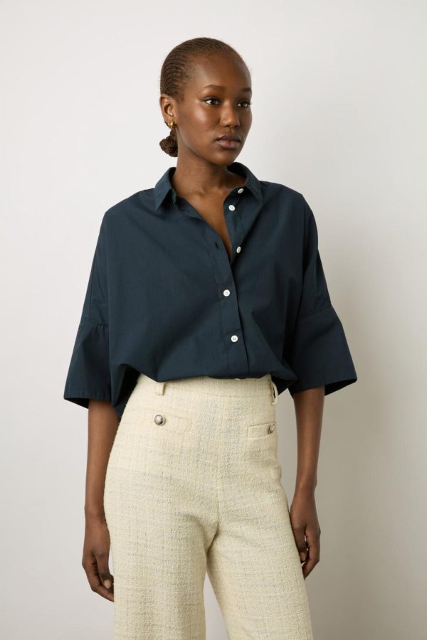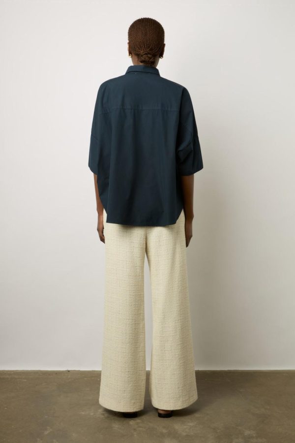 Chemise oversize à manches courtes pour un look casual chic. 100% coton.