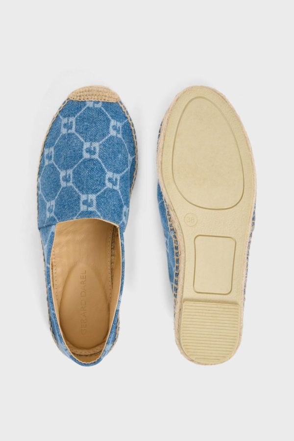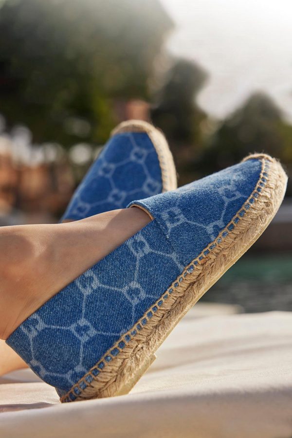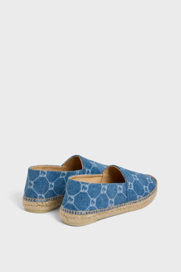 Espadrilles en denim avec le monogramme « GD ». Montées sur une semelle de caoutchouc et corde. Bout rond renforcé.