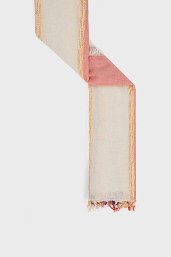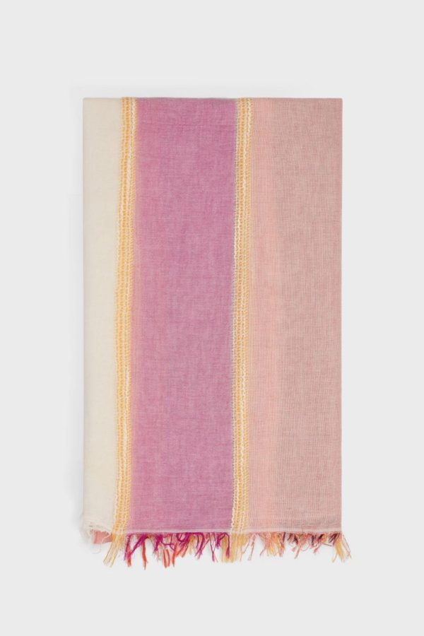 Foulard en coton coloré avec de fines rayures tissées en fil de laine et lurex.