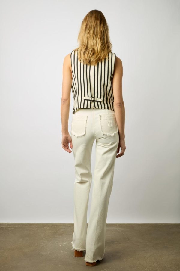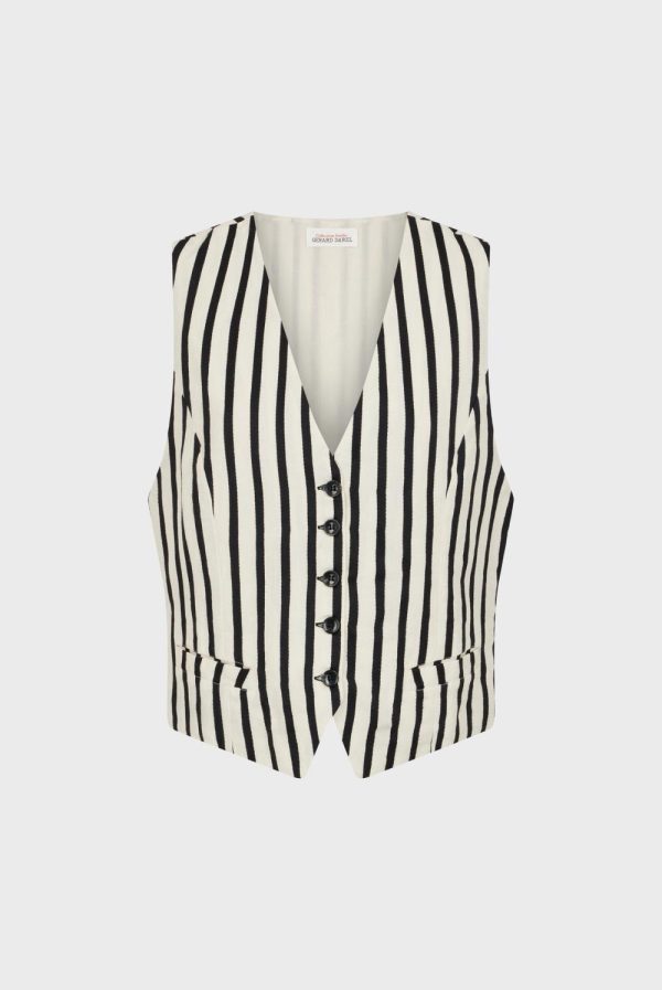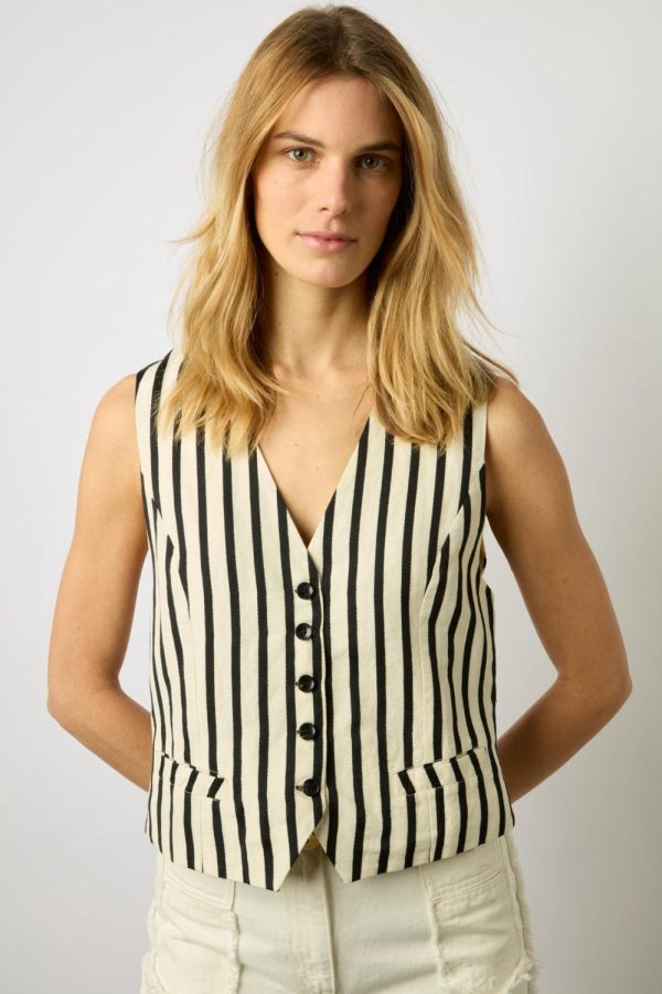 Gilet de tailleur en 100% coton pour un look casual chic. A porter avec un t-shirt ou une chemise. Rayures contrastées dans un esprit couture.