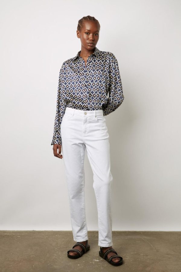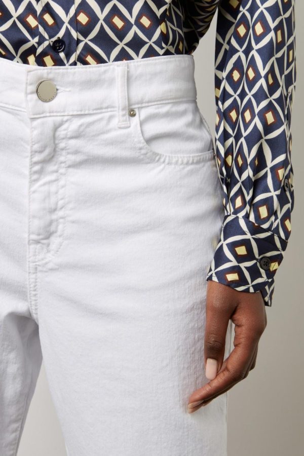 Jean slim blanc, pièce indispensable du dressing d’été.