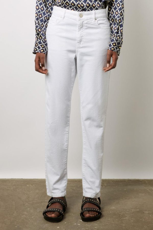Jean slim blanc, pièce indispensable du dressing d’été.