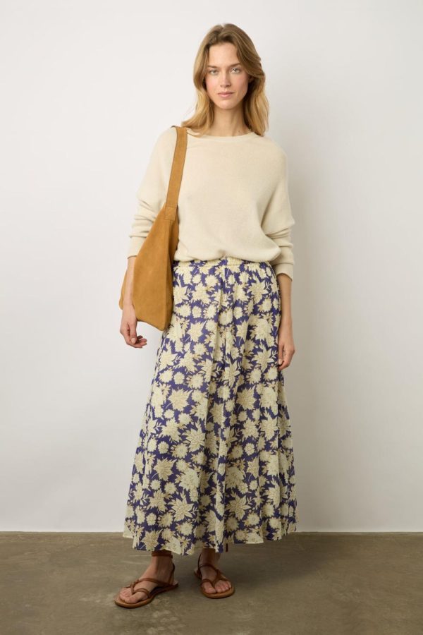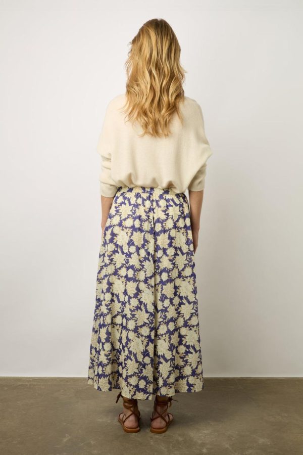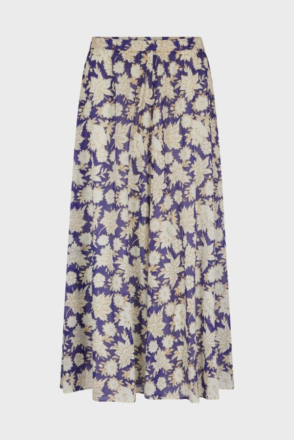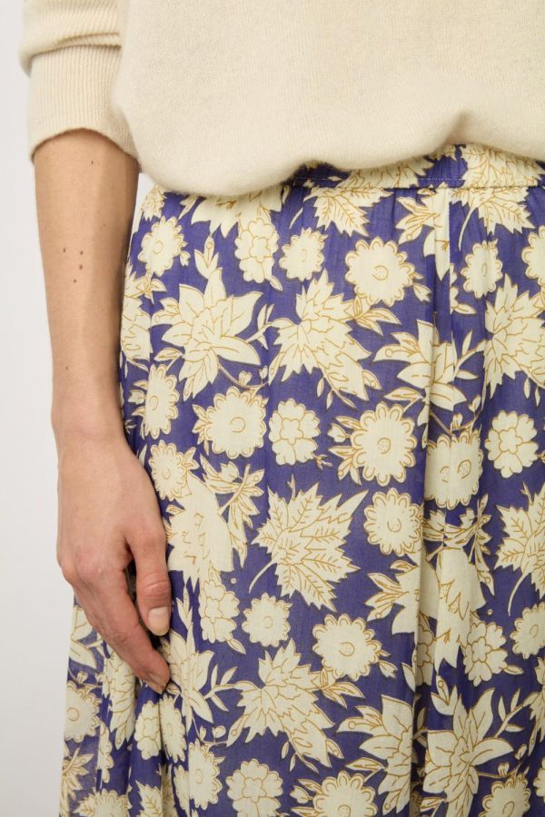 Jupe vaporeuse en voile de coton. Imprimé fleurs bicolores.