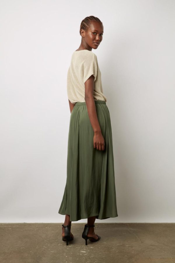 Jupe Midi En Satin Plissé Kaki DENISA | Femme Gerard Darel Jupes