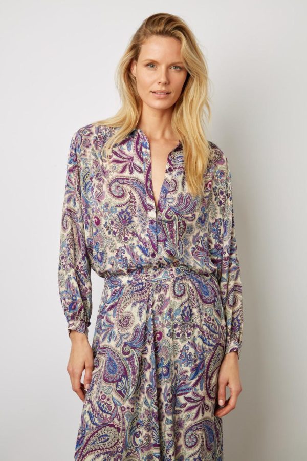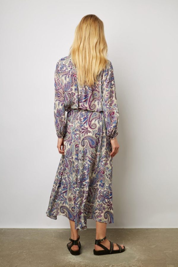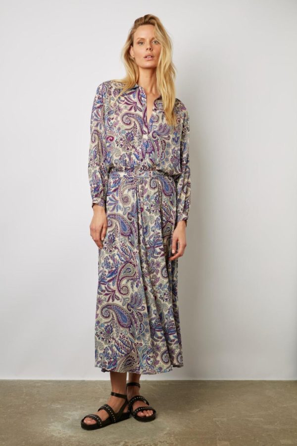 Jupe midi à imprimé cachemire dans un esprit bohème chic. Matière fluide au toucher soie.