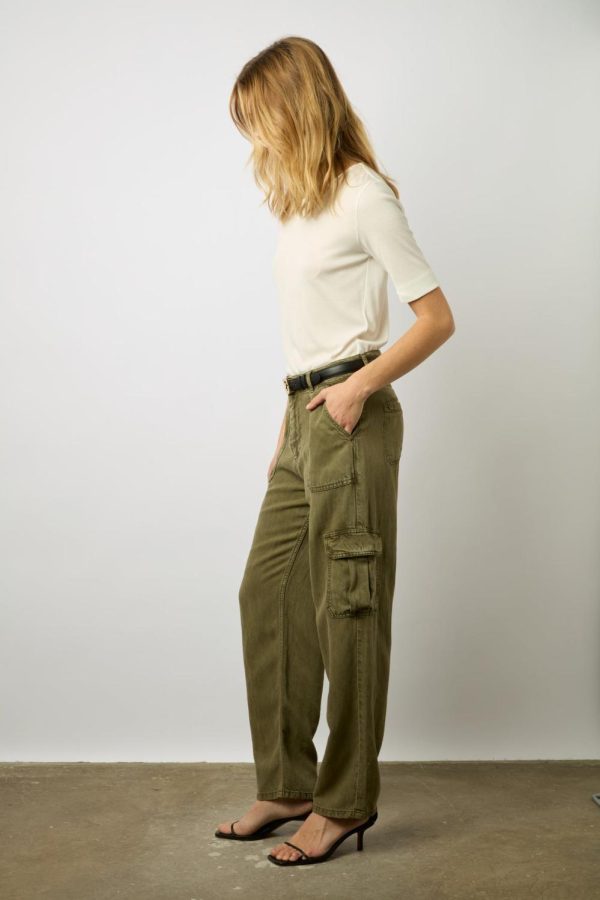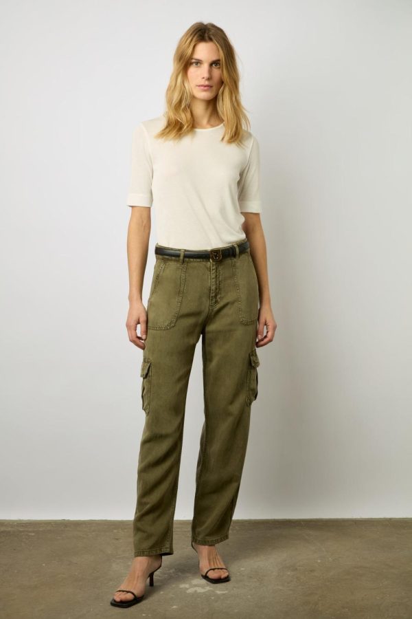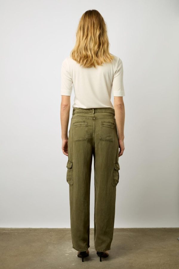 Pantalon cargo en denim de lin et tencel. Porter casual.