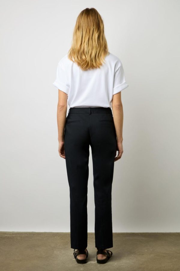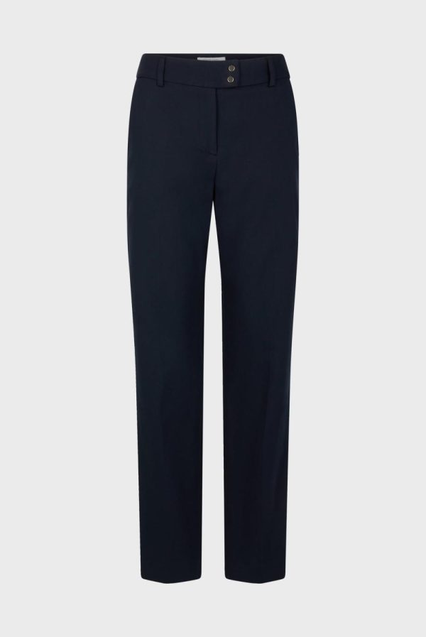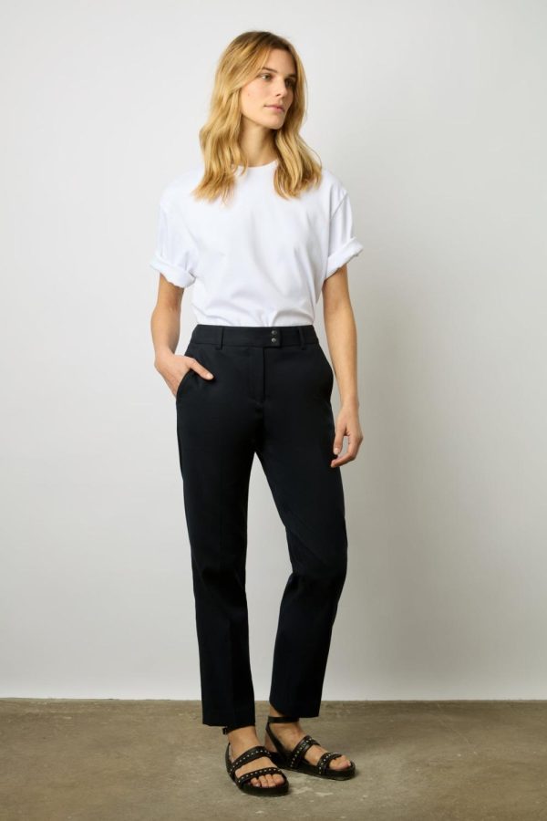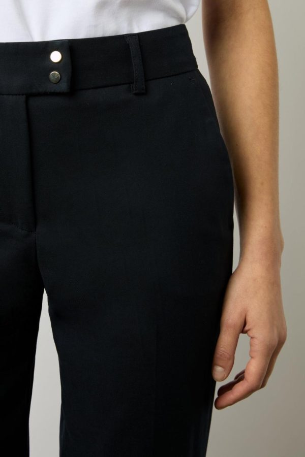 Pantalon 7/8 en coton uni pour un porter classique. Ceinture ornée de deux boutons pression dorés.
