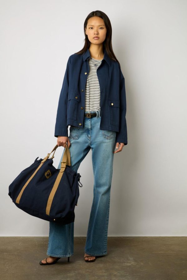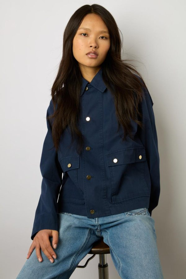 Parka courte en 100% coton avec des boutons ronds dorés. Esprit militaire.