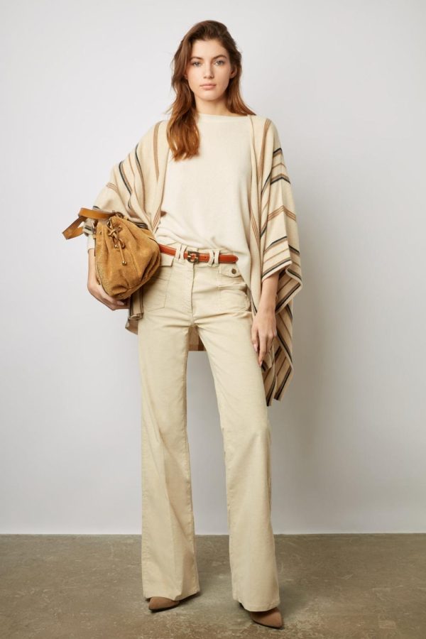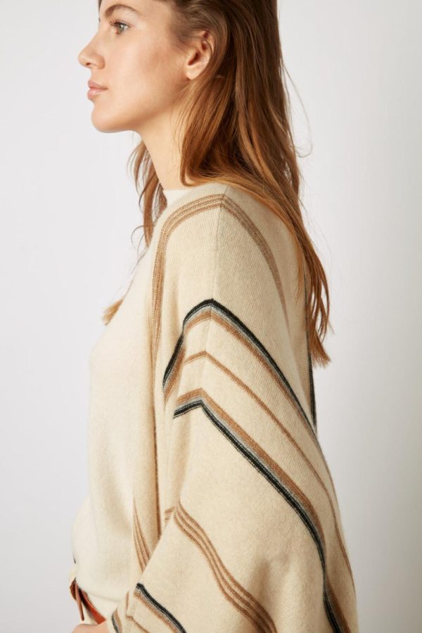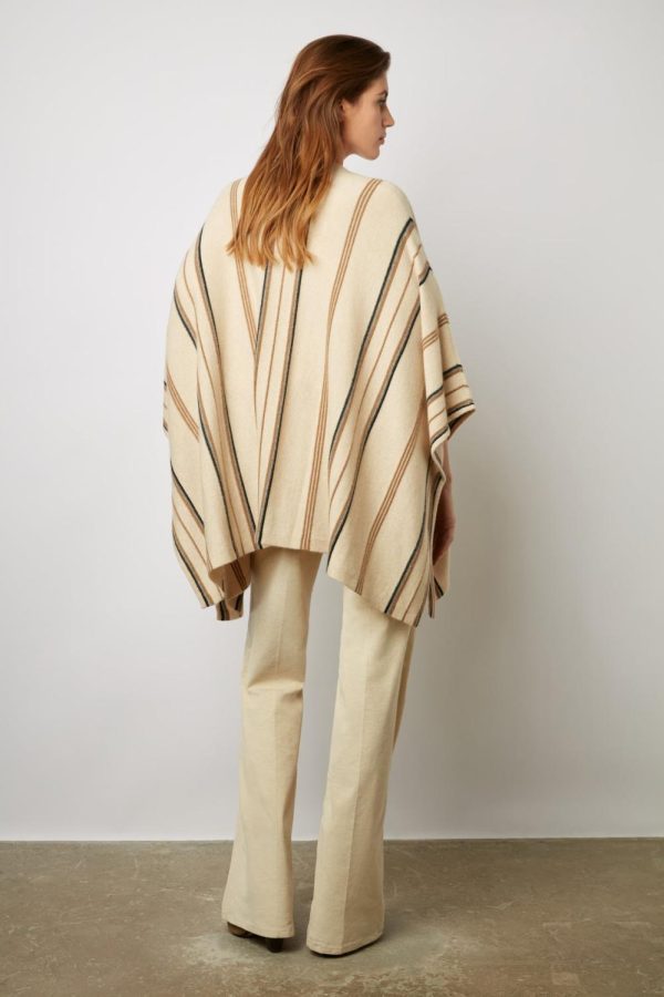 Poncho en 100% cachemire à rayures pour la mi-saison. A porter cocoon ou looké avec une grosse ceinture.