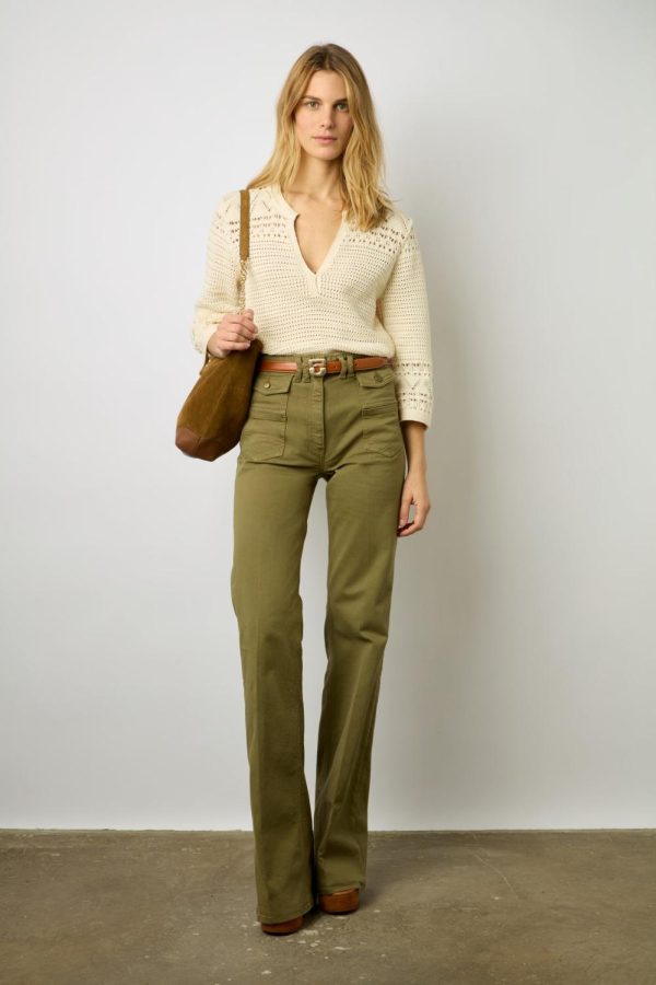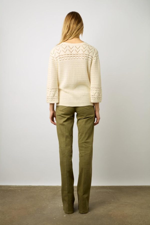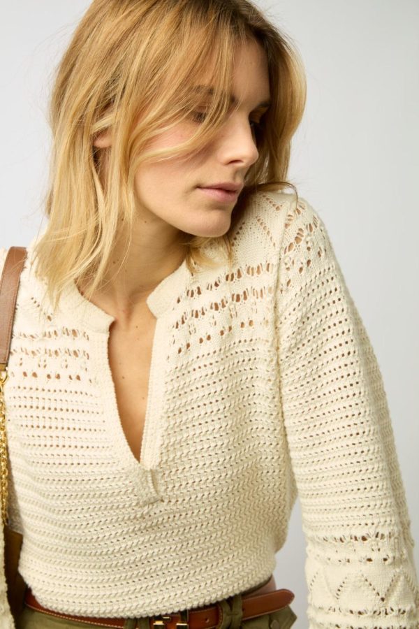 Pull à col tunisien en coton ajouré. 100% coton.