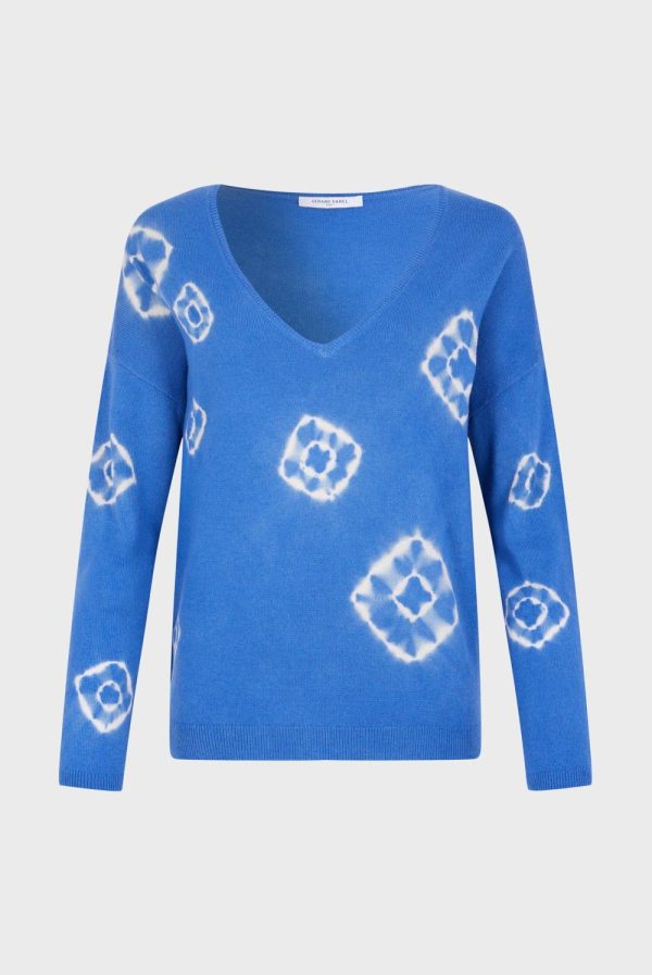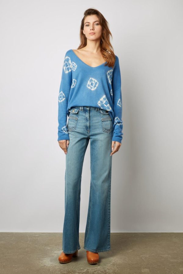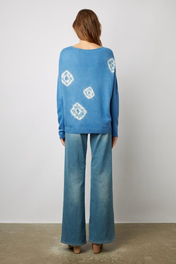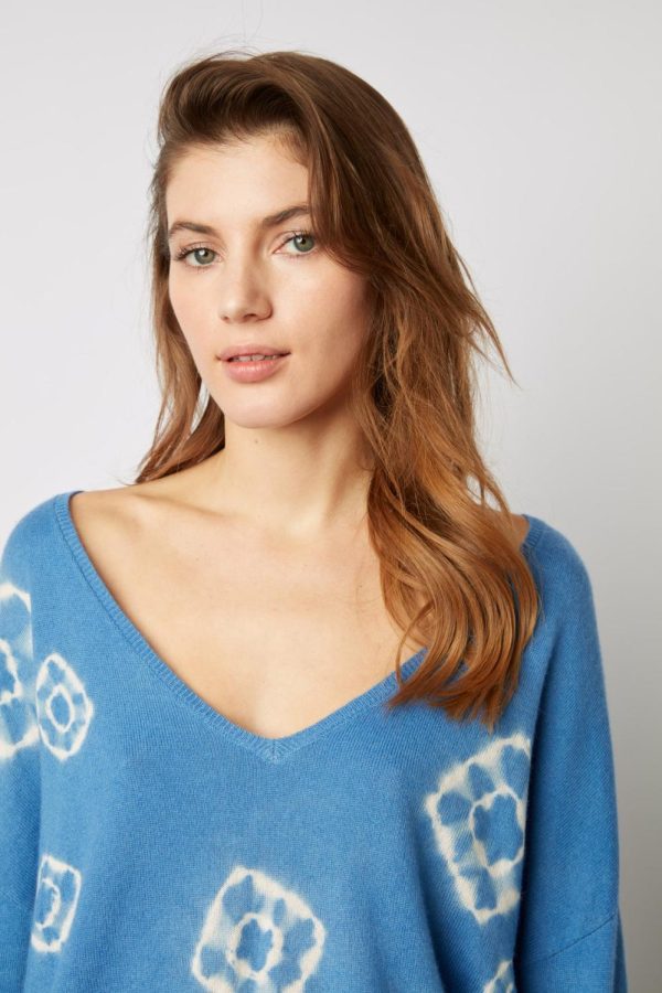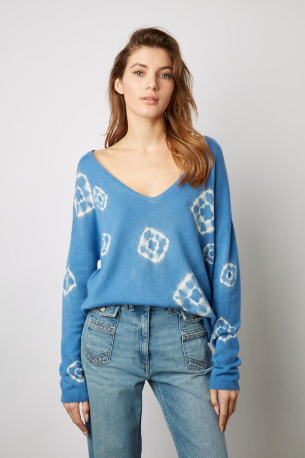 Pull en 100% cachemire avec un motif tie and dye en intarsia. Esprit bohème chic. .
