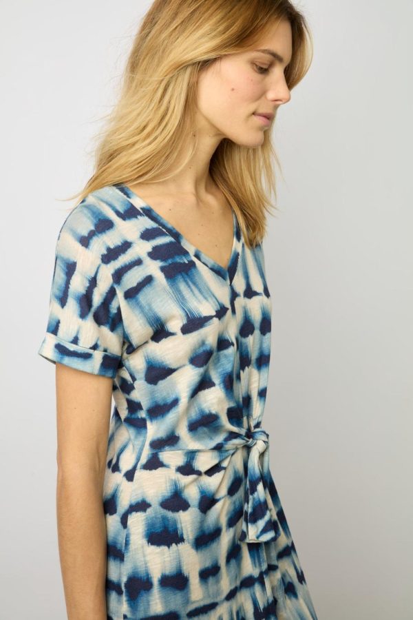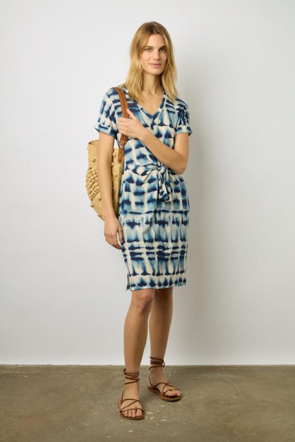 Robe courte et cintrée, imprimé mexicain en coton mélangé. Porté casual.