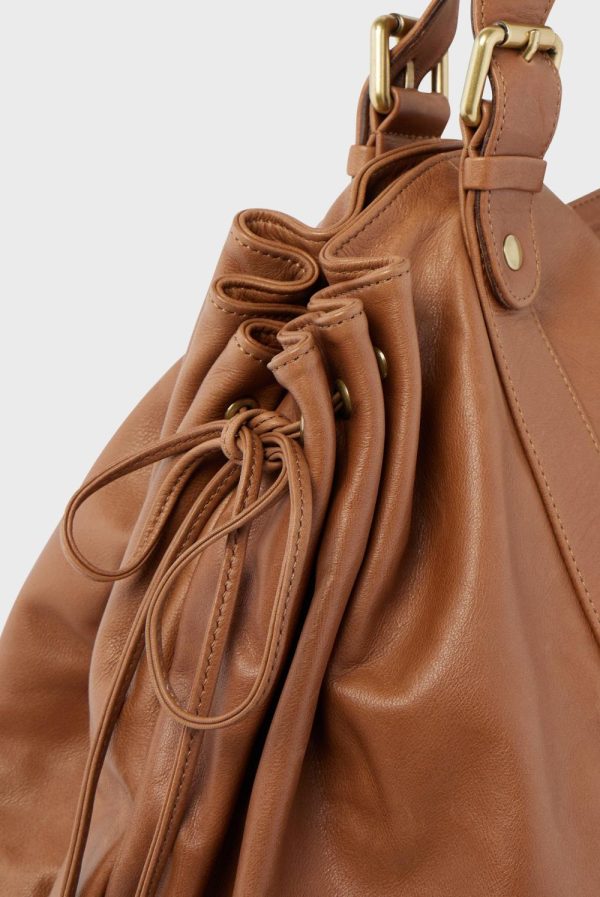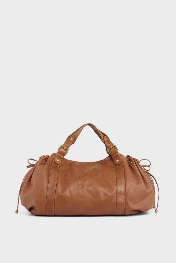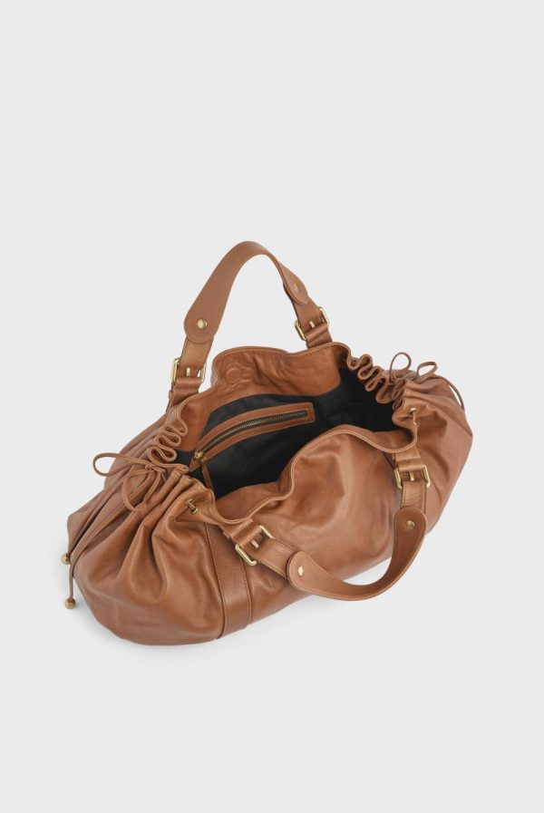 - Sac froncé sur les côtés par deux liens en cuir, enveloppé de bandes de corps.
