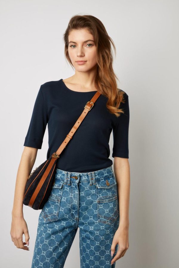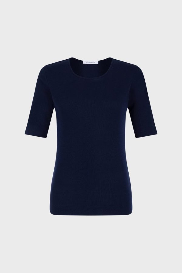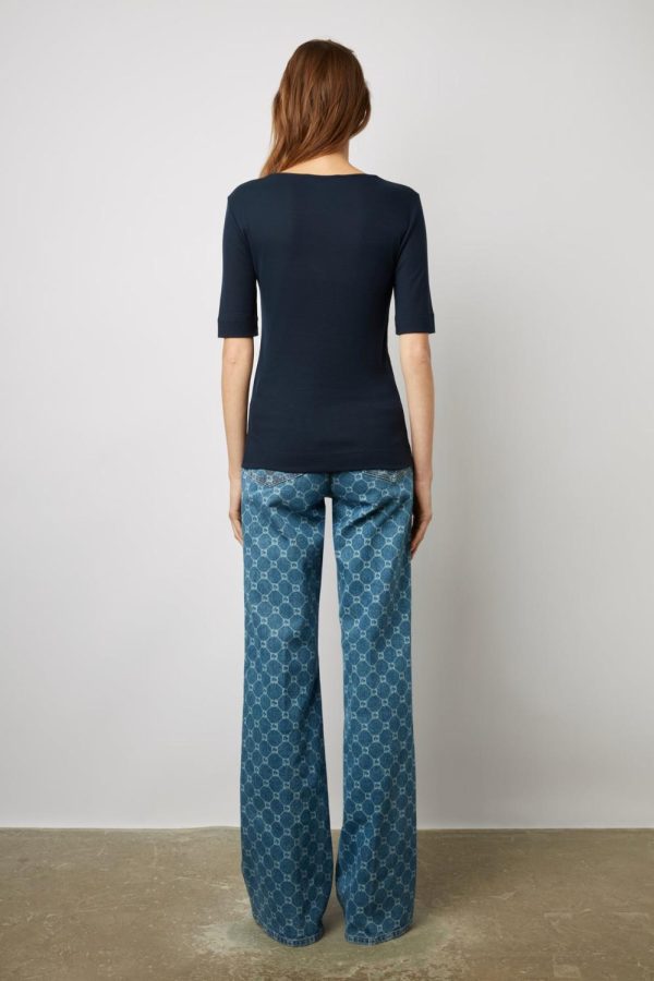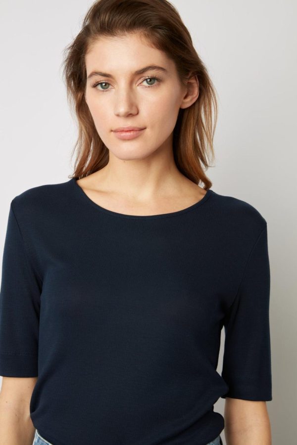 T-shirt uni à col rond et fines côtes pour un porter quotidien.