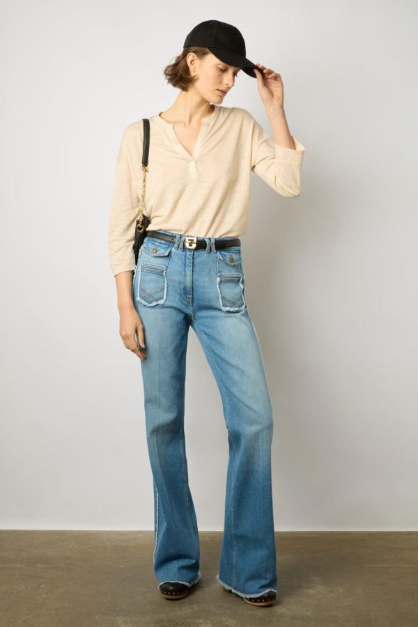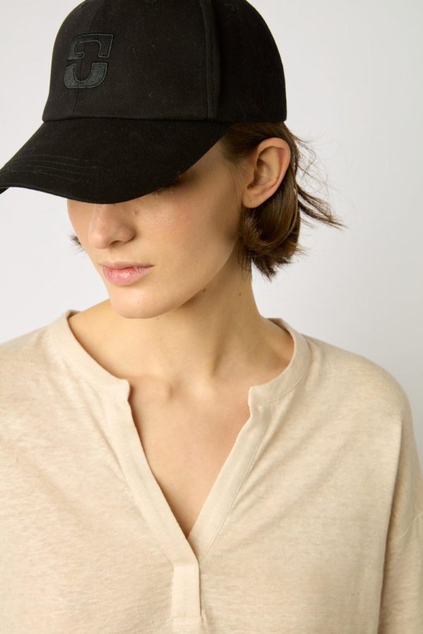 T-shirt en 100% lin avec un col tunisien. Coloris sable pour un été en douceur.