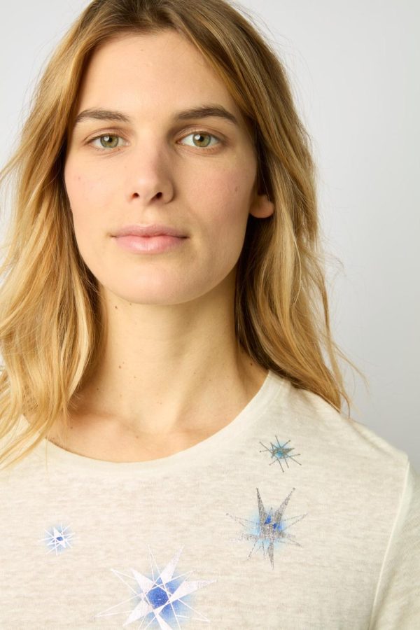 T-shirt imprimé constellation en 100% coton. Etoiles dessinées en argent.