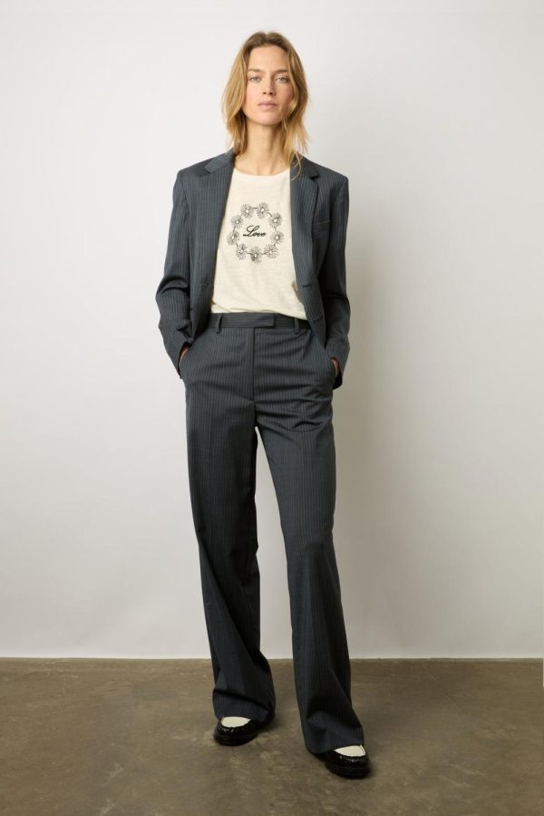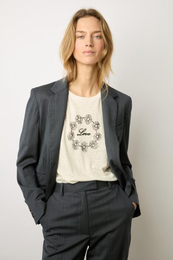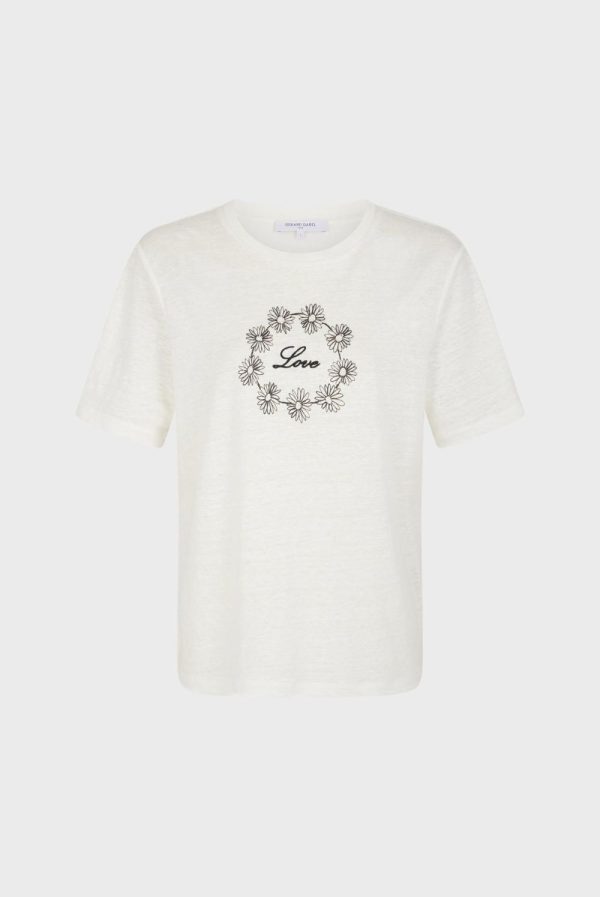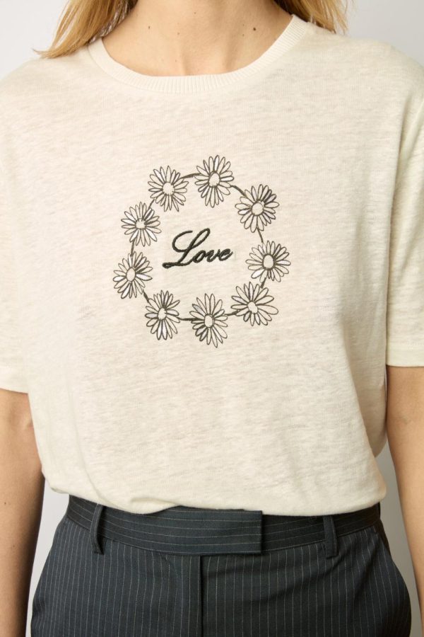 T-shirt en 100% lin orné d’une sérigraphie de marguerites et du mot LOVE brodé.
