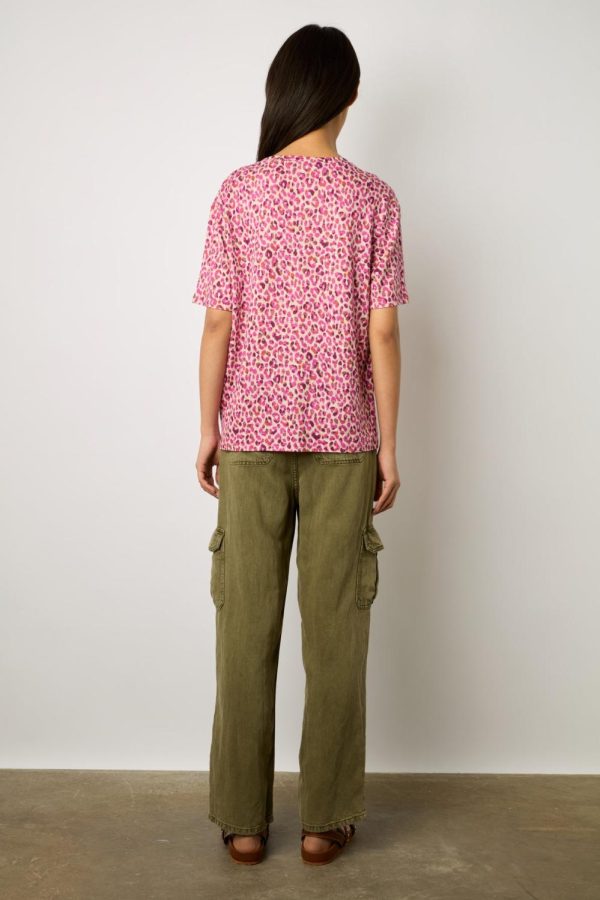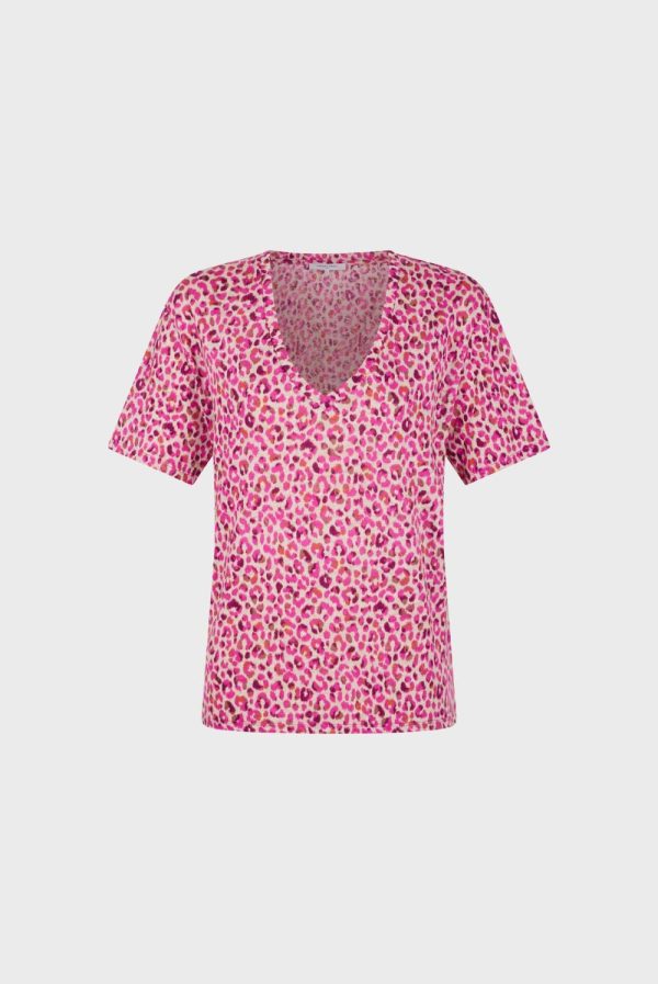 T-shirt V imprimé léopard dans des coloris vifs. 100% lin.