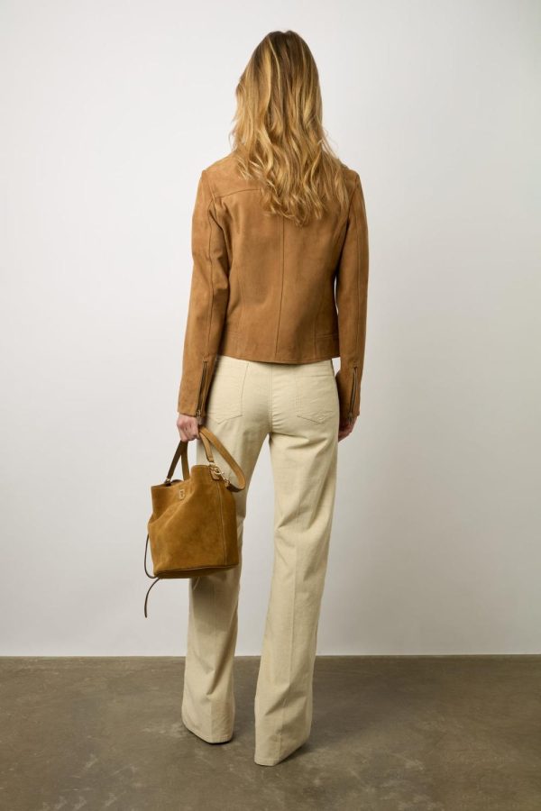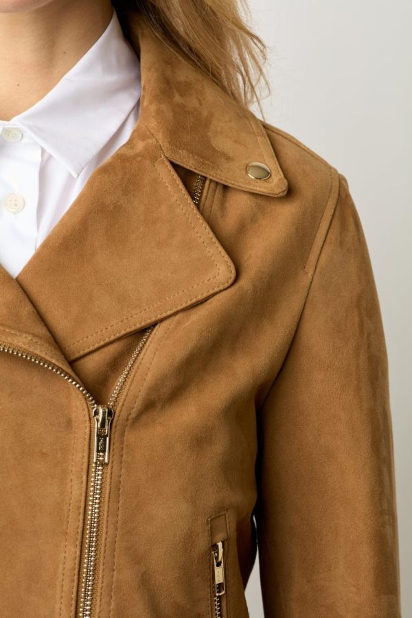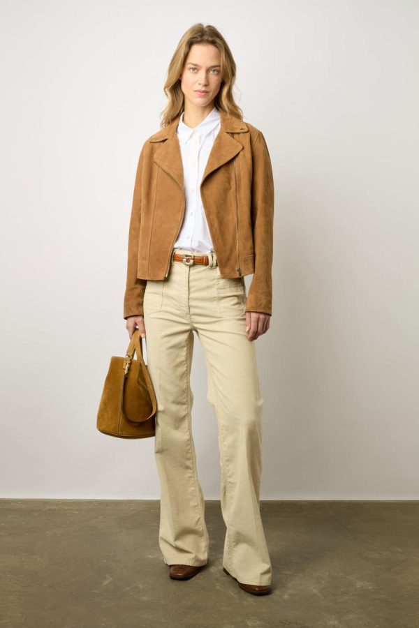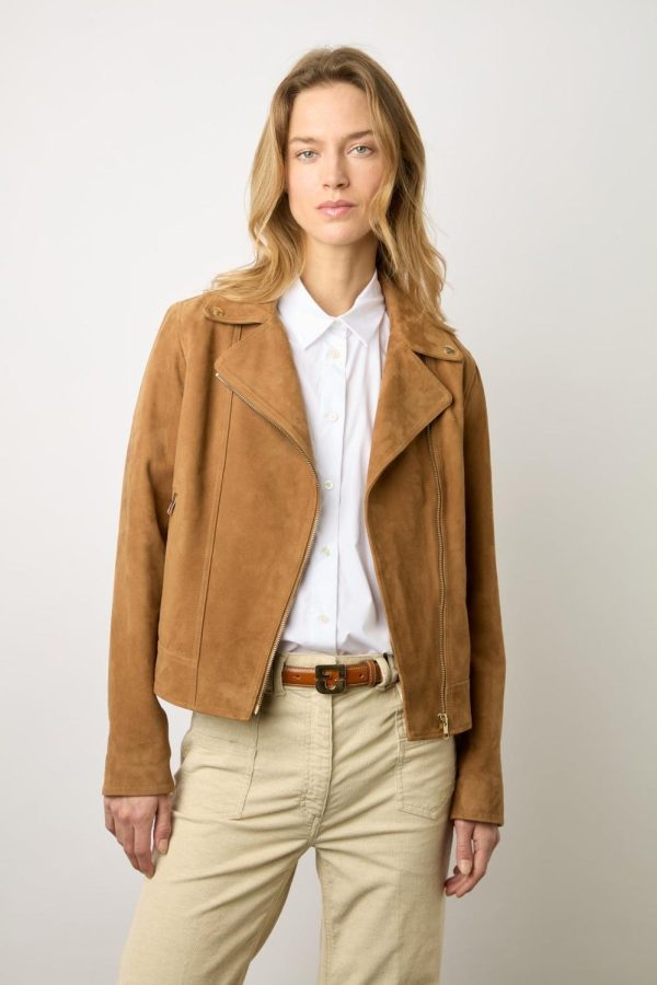Veste biker en cuir velours, pour un style rebelle-chic.